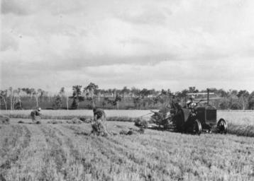 Keywords: StateLibQld 1 152767 Harvesting hay using a reaper and binder, 1927.jpg supplied with photograph 1927 handle 10462/deriv/116840 Item is held by John Oxley Library State Library of Queensland Allen G W PD-Australia StateLibQld-License 1920s way of life Agricultural machines in Australia Reaper-binders Tractors in Queensland Farmers from Australia Manual workers of Australia 1927 in Australia 1927 in agriculture Black and white photographs