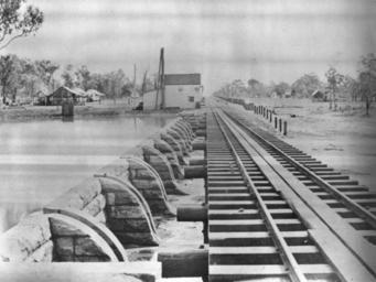 Keywords: StateLibQld 1 152779 Weir at Dingo, in Central Queensland, ca. 1878.jpg en Weir at Dingo in Central Queensland ca 1878 View shows the stone weir wall and the railway line behind it Looking towards the pump house and town circa 1878 handle 10462/deriv/116846 Item is held by John Oxley Library State Library of Queensland PD-Australia StateLibQld-License Central Western railway line Queensland 1878 in Queensland Black and white photographs Dingo Queensland Weirs in Queensland |