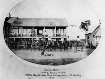 Keywords: StateLibQld 1 159842 Ingham residence, Nyanza House, Queensland, 1882.jpg en Ingham residence Nyanza House Queensland 1882 Nyanza House on the Victoria Estate sugar plantation Mrs E Cowley and Clara on the verandah while Messrs Hay Findery Rees Carney Arnott and E Cowley are gathered on horseback in front of the house 1882 handle 10462/deriv/6325 Item is held by John Oxley Library State Library of Queensland PD-Australia StateLibQld-License Corrugated iron Riders from Australia Wagons in Australia Houses in Ingham 1882 in Queensland Black and white photographs Sugar industry in Australia Sugar cane plantations in Queensland |