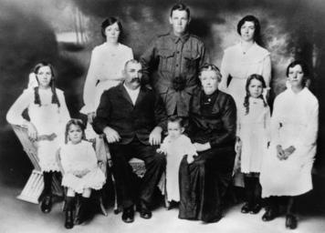 Keywords: StateLibQld 1 162095 William and Mary Bates and their family, ca. 1916.jpg en William and Mary Bates and their family ca 1916 Family group of Mr and Mrs William Bates nee Stevenson The group consists of standing Mabel Frank and Phoebe and seated left to right Edith Alice William baby Ethel Mary Stevenson Mary and Lucy circa 1916 handle 10462/deriv/110301 Item is held by John Oxley Library State Library of Queensland PD-Australia StateLibQld-License Portraits of Queensland Children of Queensland Children's clothing of Australia Women's clothing of Australia Military uniforms of Australia Black and white photographs |