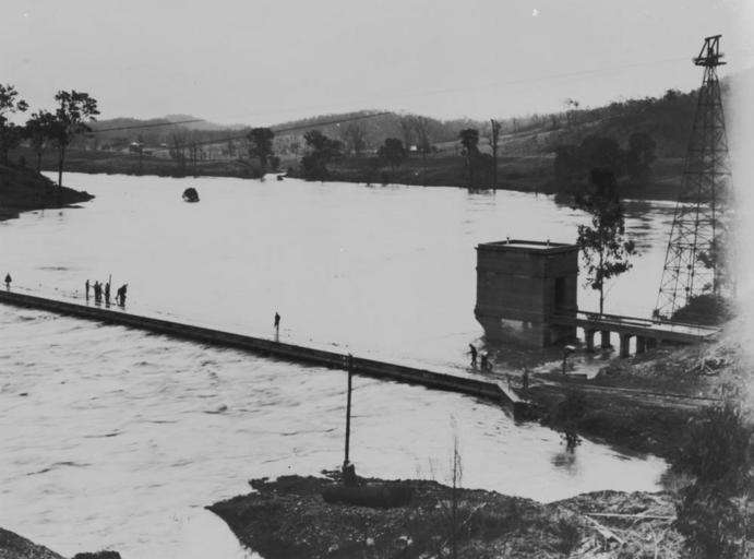 Keywords: StateLibQld 1 162667 Flooding in Mount Crosby area.jpg en Flooding in Mount Crosby area Workers checking water levels near Mount Crosby weir handle 10462/deriv/110425 Item is held by John Oxley Library State Library of Queensland Contributor s Department of Works Brisbane City Council PD-Australia StateLibQld-License Floods in Queensland Water supply Mount Crosby Queensland Black and white photographs |