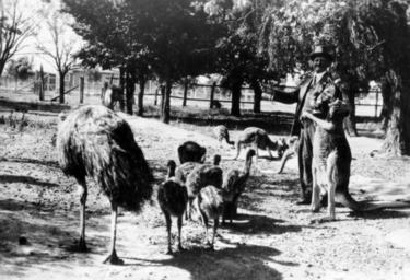 Keywords: StateLibQld 1 203716 Jack Moses.jpg en Jack Moses Writer and poet of Australian stories and verse 1860 - 1945 Moses is pictured in an iconic photograph of kangaroos and emu circa 1930 handle 10462/deriv/124164 Item is held by John Oxley Library State Library of Queensland PD-Australia StateLibQld-License Farms in Australia Dromaius novaehollandiae in zoos Dromaius novaehollandiae juvenile Unidentified Macropus 1930 in Australia Black and white photographs Unidentified locations in Australia Poets from Australia |