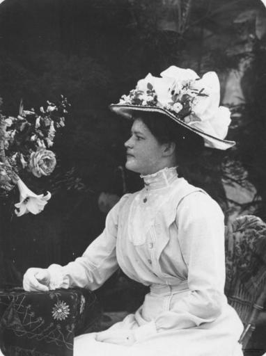 Keywords: StateLibQld 1 213936 Portrait of a woman in a large hat, 1900-1910.jpg en Portrait of a woman in a large hat 1900-1910 Young woman poses for a portrait wearing a wide-brimmed hat piled high with swathes of fabric and decorated with sprigs of flowers and a butterfly She wears a dress with a high lace collar and light-coloured gloves She is posed in profile looking towards a bunch of flowers including lilies roses and jacaranda flowers between 1900 1910 handle 10462/deriv/137838 Item is held by John Oxley Library State Library of Queensland PD-Australia StateLibQld-License Women's clothing of Australia Headgear of Australia People with hats Flowers of Australia People with gloves in Australia Portraits of Queensland 1900 in Australia Black and white photographs Flower-adorned hats |