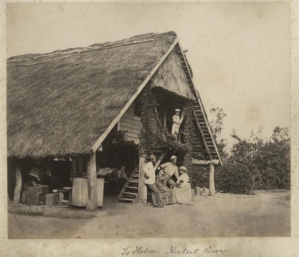 MAKE A MEME View Large Image ...Qld 1 235314 Family posing outside a large log framed house at To Kalon property, near Ingham, ca. 1881.jpg en Family posing outside a large log framed house at To Kalon property near Ingham ca 1881 Homestead has a thatched roof and very ...
