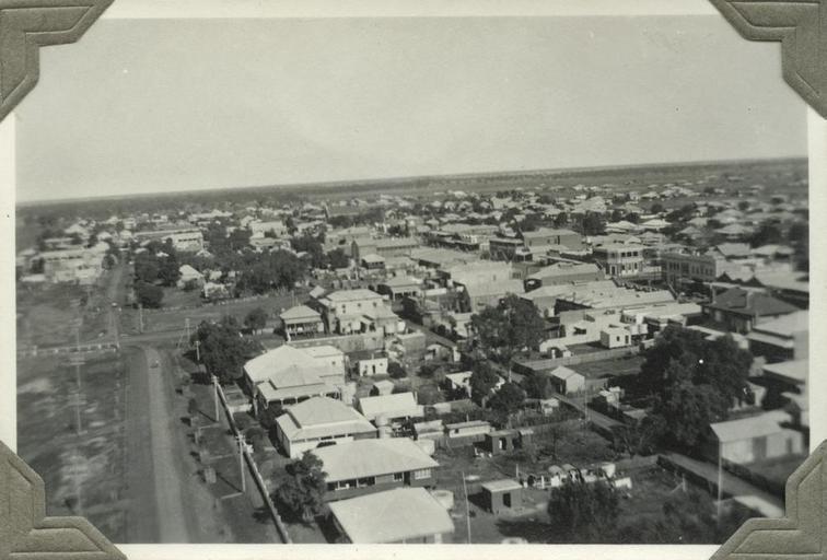 | Keywords: StateLibQld 1 259012 Aerial view of Dalby, ca. 1930.jpg en Aerial view of Dalby ca 1930 Photographs have been taken from an album donated by Allan Queale The photographs focus on the town of Dalby which is located on the Darling Downs approximately 220 kms west of Brisbane on the Warrego Highway Myall Creek a tributary of the Condamine River runs through the town Although the area is known as Queensland's wheat centre other forms of farming include a thriving cotton industry which spreads from Dalby south to Goondiwindi and west across to St George circa 1930 handle 10462/deriv/34153 Item is held by John Oxley Library State Library of Queensland PD-Australia StateLibQld-License Aerial photographs of Queensland History of Dalby Queensland 1930 in Queensland Black and white photographs |