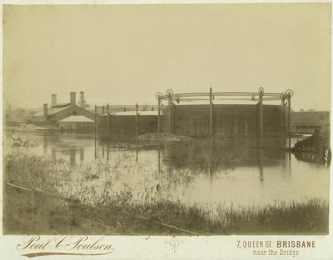 | Keywords: StateLibQld 1 299579 View of the South Brisbane Gas Works surrounded by flood water, 1890.jpg en View of the South Brisbane Gas Works surrounded by flood water 1890 The gas works were located near Davies Park along Montague Road South Brisbane 1890 handle 10462/deriv/151670 Item is held by John Oxley Library State Library of Queensland Poulsen Paul C PD-Australia StateLibQld-License Gasworks 1890 Brisbane flood Floods in South Brisbane 1890 in Queensland Black and white photographs West End Gasworks |