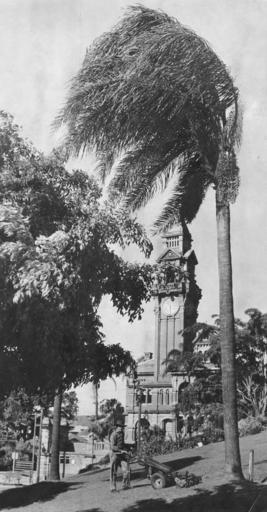 | Keywords: StateLibQld 1 389925 South Brisbane Town Hall, 1948.jpg en South Brisbane Town Hall 1948 A red brick building with an ornate clock tower and archway South Brisbane Town Hall in Vulture Street was built in 1892 with an impressive tower with provision for four six foot diameter clock dials but it was not until 1904 that the council could afford the £100 for a clock Since the dissolution of the City of South Brisbane in 1925 the building has had many different occupants but the clock which may actually be the world's first electrically controlled tower clock has continued to tick on in tribute to its maker 1948-06-01 handle 10462/deriv/192997 Item is held by John Oxley Library State Library of Queensland PD-Australia StateLibQld-License Brisbane City Hall Arecaceae in Australia Unidentified Arecaceae low quality Clock towers in Queensland 1948 in Australia Black and white photographs South Brisbane Town Hall Vulture Street Brisbane |