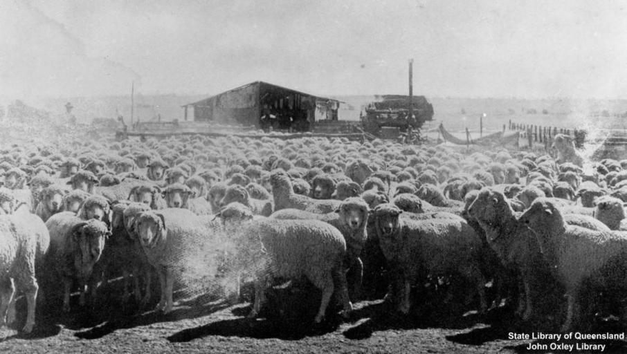 | Keywords: StateLibQld 2 180351 Sheep waiting for shearing near the shearing shed, ca 1910.jpg en Sheep waiting for shearing near the shearing shed ca 1910 1910 handle 10462/deriv/103949 Item is held by John Oxley Library State Library of Queensland PD-Australia StateLibQld-License Black and white photographs Sheep in Queensland 1910 in Australia Sheep shearing Wool | ||||