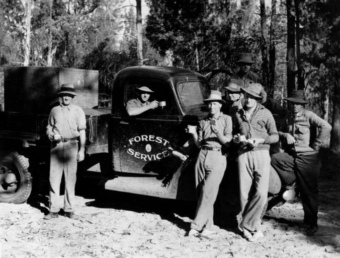 Keywords: StateLibQld 2 201007 Members of the Forest Service enjoy a tea break by the side of the road, 1930-1940.jpg en Members of the Forest Service enjoy a tea break by the side of the road 1930-1940 between 1930 1940 handle 10462/deriv/96586 Item is held by John Oxley Library State Library of Queensland PD-Australia StateLibQld-License Manual workers of Australia 1930s in Australian society Black and white photographs Loggers from Australia Logging in Australia Cuisine of Australia Trucks in Australia Mugs |
