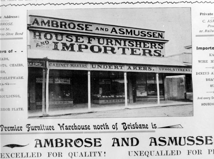 MAKE A MEME View Large Image ...Qld 2 202247 Ambrose and Asmussen, Furniture showroom in Gympie in 1903.jpg en Ambrose and Asmussen Furniture showroom in Gympie in 1903 Local furniture warehouse and undertakers in Gympie Gympie is a city in south-eastern Queensland ...