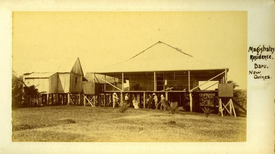 Keywords: StateLibQld 2 231168 Colonial bungalow of the Magistrate of Daru Island, Torres Strait, Papua New Guinea.jpg en Colonial bungalow of the Magistrate of Daru Island Torres Strait Papua New Guinea Wide verandas of the Magistrate's Residence Daru Visitors probably with the Hon J Foxton's party are seated in front of the building Detached huts possibly islanders' residences and kitchen facilities lay to the left of the photograph 1899 handle 10462/deriv/16971 Item is held by John Oxley Library State Library of Queensland Mobsby Henry William PD-Australia StateLibQld-License Women's clothing of Australia Black and white photographs Pith helmets in Australia Huts in Queensland 1899 in Queensland Verandas on single story Queensland houses Domestic rainwater tanks Queensland |