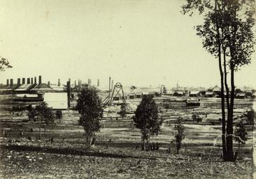 Keywords: StateLibQld 2 257583 Copperfield mining works as seen from the manager's office, Copperifled, 1876.jpg en Copperfield mining works as seen from the manager's office Copperifled 1876 Copperfield was once a booming mining town and produced Queensland's first copper mine The mine was the first to be worked commercially outside South Australia and also the first rich mine in Queensland In 1862 a 10 feet high wall of solid copper ore was discovered at Copperfield Mining continued until the 1880's when the best quality ore was mined out Copperfield is located 5km south of Clermont in the Belyando Shire North Queensland 1876 handle 10462/deriv/34709 Item is held by John Oxley Library State Library of Queensland PD-Australia StateLibQld-License Black and white photographs Copper mining in Australia Panoramics in Queensland Copperfield Queensland Chimneys in Queensland Mines in Queensland 1876 in Queensland |