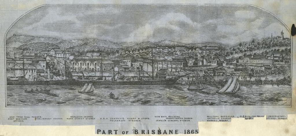 Keywords: StateLibQld 2 258939 Early engraving, part of an panorama of the town of Brisbane viewed from the River.jpg en Early engraving part of an panorama of the town of Brisbane viewed from the River Landmarks such as One Tree Hill Mount Coot-tha the Gaol and the Observatory The Windmill are included See also APA-059-01-0008 1865 handle 10462/deriv/35200 Item is held by John Oxley Library State Library of Queensland PD-Australia StateLibQld-License Black and white photographs Cityscapes in Queensland Engravings of Australia Views of Queensland 1865 in Brisbane |