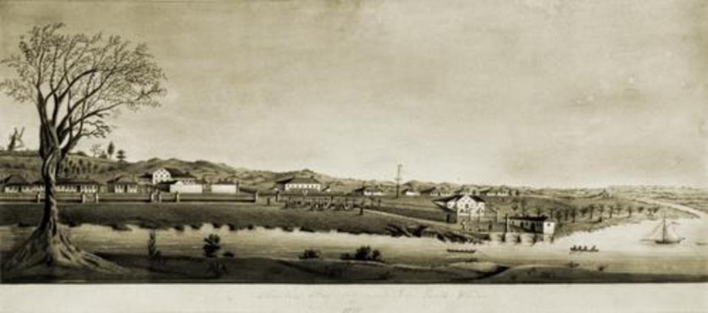 Keywords: StateLibQld 2 305410 Image of a watercolour painting of Moreton Bay Settlement New South Wales in 1835.jpg en Image of a watercolour painting of Moreton Bay Settlement New South Wales in 1835 <br /> Note that Queensland did not become a colony separate from New South Wales until 1859 <br /> This panorama landscape depicts the Moreton Bay Settlement in 1835 The viewpoint is from South Brisbane on the site now occupied by the Queensland Cultural Centre The Brisbane landscape and buildings of the period are depicted Buildings depicted are the Windmill with a fence in front and the treadmill building to the left; the row of buildings from left to right are the surgeon ™s cottage and convict and military hospitals three low set buildings in a row ; the convict barracks a multi-storey building with a walled yard; the military barracks a multi-storey building with a low set guard house just visible to the left; the Engineer ™s House used during Bowerman ™s time as offices for the commandant and commissariat staff; the kitchen for and then the Parsonage building which by 1835 was being used as quarters for commissariat staff; the Commissariat Stores buildings with an arched wharf with a crane and sentry box to the front a small boat house to the left of the wharf and boat builders hut and storeroom to the right of the wharf; and the Commandant ™s House with a small kitchen/convicts ™ quarters building to the left The building in the far right of the painting shown behind a row of trees growing on the river bank was the Government Gardeners house 1835 handle 10462/deriv/151236 Item is held by John Oxley Library State Library of Queensland Bowerman Henry Boucher 1789-1840 PD-Australia StateLibQld-License Black and white photographs Paintings in Australia Brisbane River Images from the State Library of Queensland Moreton Bay 1835 in Australia |