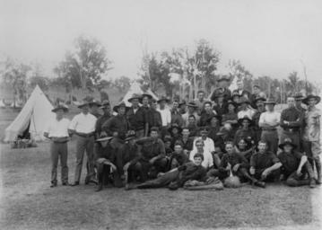 | Keywords: StateLibQld 2 389373 Regiment of light-horsemen at an army camp near Mundoolun, 1909.jpg supplied with photograph 1909 handle 10462/deriv/192145 Item is held by John Oxley Library State Library of Queensland Stark Will PD-Australia StateLibQld-License Military buildings in Australia Military uniforms of Australia Black and white photographs Australian Light Horse 1909 in Australia Australian Army 20th-century cavalry | ||||
