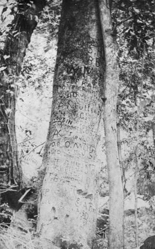 | Keywords: StateLibQld 2 394221 Marked tree on Bunya Mountains, ca. 1920.jpg en Marked tree on Bunya Mountains ca 1920 Tree trunk marked with people's names circa 1920 handle 10462/deriv/192653 Item is held by John Oxley Library State Library of Queensland Foster J H ; Contributor s Queenslander Brisbane Qld 1866-1939 PD-Australia StateLibQld-License Bunya Mountains National Park Black and white photographs Trees in Australia Vines | ||||