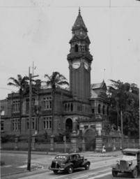 Keywords: StateLibQld 2 71399 South Brisbane Town Hall on Vulture Street, South Brisbane, 1948.jpg en South Brisbane Town Hall on Vulture Street South Brisbane 1948 Work began on the South Brisbane Town Hall situated on the corner of Vulture and Graham Streets in 1891 The hall was designed by architects John Hall and Son and the builder was Abraham James After the work had been in progress for several months the firm of Mr James went bankrupt Tenders were invited to complete the work and on January 5 1892 the top stone of the tower was set in place by the Mayor Alderman Heaslop The final cost was £11 000 The official opening was on 1 July 1892 and the Brisbane Courier described the building as 'one of the most ornate and elegant buildings in the city' It was not until 1904 that the clock was installed in the tower by Alfred George Jackson of the Synchronome Company 1948-05-01 handle 10462/deriv/86720 Item is held by John Oxley Library State Library of Queensland Contributor s The Courier-Mail PD-Australia StateLibQld-License Images from The Courier-Mail Black and white photographs Architecture of Australia Town halls in Queensland 1948 in Australia Clock towers in Queensland South Brisbane Town Hall Vulture Street Brisbane |