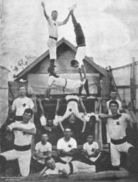 | Keywords: StateLibQld 2 94624 Members of the Chillagoe Gymnasium in a gymnastic formation, 1905.jpg en Members of the Chillagoe Gymnasium in a gymnastic formation 1905 Male gymnasts from the Gymnasium at Chillagoe Queensland in 1905 posing for a photograph in a human pyramid 1905 handle 10462/deriv/74488 the North Queensland Register 7 August 1905 Deicke C PD-Australia StateLibQld-License Images from North Queensland Register Black and white photographs Gymnasts from Australia Gymnastics in Australia Chillagoe Queensland 1905 in Australia Gymnasiums |