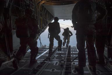 | Keywords: Static-line parachute qualification 140703-N-JP249-206.jpg en Members of Explosive Ordnance Disposal Mobile Unit EODMU 11 jump out of a Wyoming Air National Guard C-130 Hercules during a static-line parachute qualification jump EODMU-11 provides operational capability for the location identification rendering safe recovery field evaluation and disposal of explosive ordnance U S Navy photo by Mass Communication Specialist 2nd Class Kenan O'Connor/Released 2014-07-03 Petty Officer 2nd Class Kenan O'Connor https //www dvidshub net/image/1446489 140703-N-JP249-206 2014-07-14 10 00 SAN DIEGO CA US PD-USGov-Military-Navy Lockheed C-130 Hercules Images from DoD uploaded by Fæ |