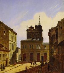 Keywords: Station-1-pruss-teleg.jpg Berliner Sternwarte Dorotheenstraße Ausschnitt aus F W Kloses Gemälde Berlin “ Astronomisches Observatorium mit Signalmast der optischen Telegrafenstation Station 1 of the Prussian optical telegraph Berlin Verwaltung der staatlichen Schlösser und Gärten Schloss Charlottenburg Berlin; Oil on Canvas < 1848 Creator Friedrich Wilhelm Klose Outcat of žBerlin “ Astronomisches Observatorium see http //www wooop de/app service external/Painting sp l789909 Image Sternwarte Berlin Klose1 jpg PD-old-100 Optical telegraph in art Berliner Sternwarte Dorotheenstraße Friedrich Wilhelm Klose |