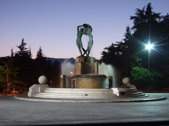 Keywords: statue monument city fontana l'aquila abruzzo italy twilight lights lighting