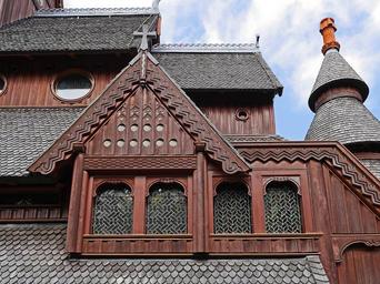 Keywords: stave church roof landscape close up dormer window leaded glass timber construction woodworking round tower shingle gable world heritage site building architecture historically goslar-hahnenklee wooden church
