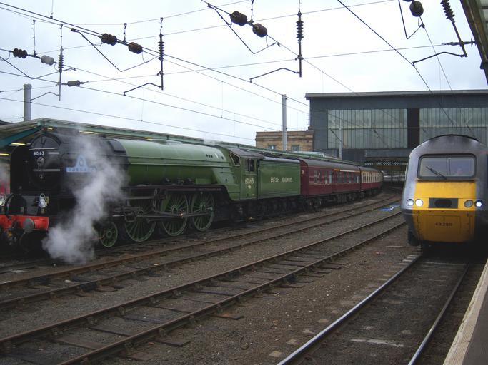 | Keywords: Steam locomotive 60163 Tornado Carlisle Cumbrian Mountain Tornado 10 Oct 2009 pic 7e.jpg Brand new British steam locomotive No 60163 Tornado at Platform 3 of w Carlisle railway station preparing to depart south with the return leg of the The Cumbrian Mountain Tornado railtour While steam engines are relatively common visitors to Carlisle also pictured is a rare visitor an InterCity 125 No 43290 of National Express East Coast departing Platform 4 southbound for Newcastle on diversion due to weekend engineering works to the East Coast Main Line meaning trains between Newcastle and Edinburgh travelled via Carlisle own 2009-10-10 Ultra7 LNER Peppercorn Class A1 60163 Tornado in LNER Apple Green livery LNER Peppercorn Class A1 60163 Tornado in 2009 LNER Peppercorn Class A1 60163 Tornado all files LNER Peppercorn Class A1 60163 Tornado in colour photographs LNER Peppercorn Class A1 60163 Tornado on the British mainline British Rail Class 43s of National Express East Coast 43290 British Rail Class 43s in National Express livery 43290 British Rail Class 43s on the Tyne Valley Line 43290 Trains at Carlisle railway station Charter trains of the United Kingdom |