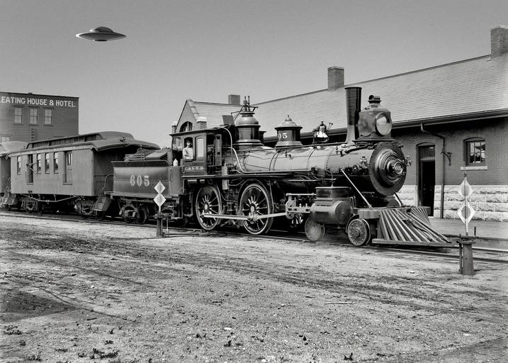 Keywords: steam locomotive anachronism antique steam train locomotive old vintage transportation ufo flying saucer