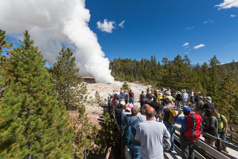 | Keywords: yellowstone yellowstone national park yellowstonenationalpark national park nationalpark outdoor Steam phase following an eruption of Steamboat Geyser and visitors; Neal Herbert; September 4, 2014; Catalog #19723d; Original #5410 Steam phase following an eruption of Steamboat Geyser and visitors; Neal Herbert; September 4, 2014; Catalog #19723d; Original #5410 |