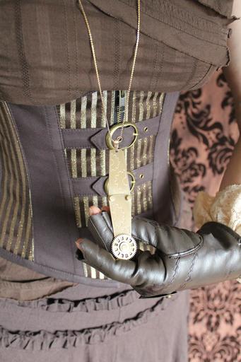 Keywords: steampunk jewellery jewelry corset brown fashion model glove necklace cog navigatrix