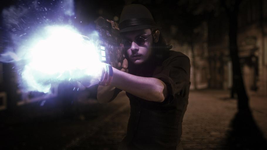 Keywords: steampunk punk night scifi cyberpunk fancy man costume cosplay style victorian street vintage gothic attractive trilby technology blaster fashion handsome beard stylish shooting