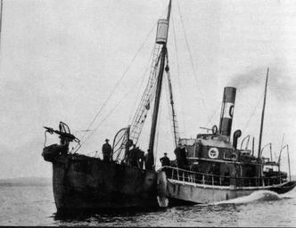 Keywords: Steamwhaler.jpg en small steamship with harpoon canon from Sept-Îles Quebec about 1900 Marie-Claude Quellet Fabulous Whales and other Marine Mammals of Eastern Canada 2002 ISBN 2-7619-1722-7 Bodoklecksel PD-old Ships of Canada 1900s ships History of whaling Harpoon guns Whale catchers |