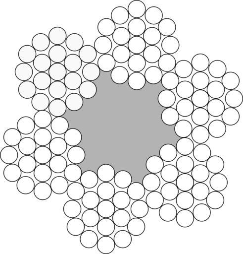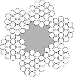 Keywords: Steel rope crossection.svg Przekrój stalowej liny A crossection of a steel rope Own 2006-10-24 Marcin Floryan Created with Inkscape Cross sections of steel wire ropes