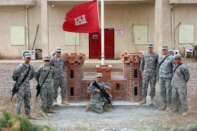 Keywords: Steel Spike Soldiers use engineer skills to create 'Engineer Castle' DVIDS114318.jpg en Soldiers show off their engineering work of art a 5-foot tall red brick engineer castle that stands in front of the 926th Engineer Brigade headquarters The castle was built by the Soldiers of the 955th Engineer Company which is based out of Fort Leonard Mo and Company B which is out of Fort Rucker Ala Both units belong to the 46th Engineer Combat Battalion of Multi-National Division “ Baghdad's 926th Engineer Brigade Brig Gen Jeffrey Talley who hails from South Bend Ind along with Command Sgt Maj Dan Zebrauskas from Chicago Ill held a short coin ceremony Sept 9 2008 to congratulate the Soldiers for a job well done 2008-09-09 1st Lt Angel Richardson https //www dvidshub net/image/114318 114318 2008-09-10 09 20 BAGHDAD IQ PD-USGov Jeffrey W Talley Fort Rucker Images from DoD uploaded by Fæ |