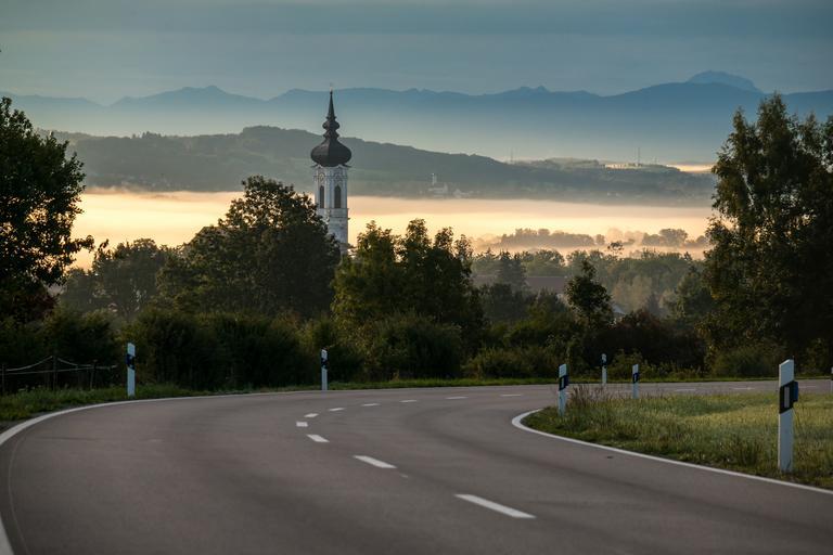 Keywords: steeple road fog fog bank alpine marie münster dießen diessen church germany ammersee curve bavaria