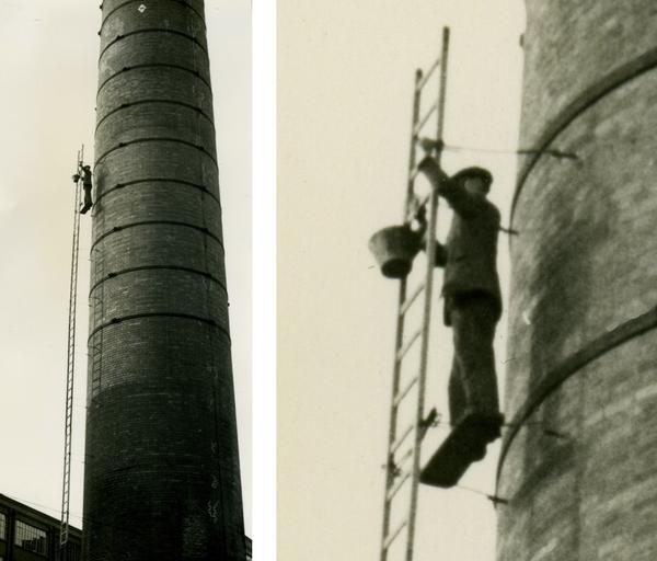 Keywords: Steeplejack on a chimney in 1960 arp.jpg A steeplejack at work on a chimney believed to be Fry ™s in central Bristol England The chimney has now been demolished The enlargement suggests that the man had no safety devices or ropes Photographed by Adrian Pingstone in approx 1960 and placed in the public domain 2009-03-21 own assumed Arpingstone Black and white photographs Black and white photographs of England Black and white photographs of the United Kingdom in the 1960s Freestanding chimneys Steeplejacks 1960 in Bristol 1960 photographs Ladders Men at work in the United Kingdom People of the United Kingdom in 1960 |