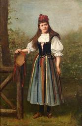 Keywords: Stefano Novo, Mädchen in Tracht.jpg Artwork Creator Stefano Novo Junge Frau in Gartenlandschaft an Holztor lehnend In ihrer Rechten ein Tamburin haltend und eine italienische Tracht tragend 1891 oil canvas cm 77 51 Stefano Novo - 1891 signature lower left object history Vom Auktionshaus Hampel am 17 09 2010 für 3 600 ‚¬ verkauft 1 Auktionshaus Michael Zeller http //www zeller de/de/auktionen/ Galerie http //www zeller de/de/highlights/einige-highlights-der-109-int-bodensee-kunstauktion-juni-2011/ Info http //www zeller de/de/katalog/auktion-109-juni-2011/auktionsartikel/stephano-novo-1862-cavarzere-1927-padua-war-schueler-von-p-molmenti-und-e-blaas-2/ Pic 2 Auktionshaus Hampel http //www hampel-auctions com Gallery ° http //www hampel-auctions com/de/archive-artists/n/7297 html Info ° http //www hampel-auctions com/img/auktionen/A82/s/Hampel-79154012 jpg Pic PD-old-80 en Faithful reproduction of an 2D art-work The author died 1927 more than 80 years ago the image is public-domain Other versions DEFAULTSORT Novo Stefano Stefano Novo Romantic paintings of Italian women Paintings in Italy Images from Hampel Auctions Images from Auktionshaus Zeller |