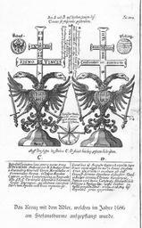 | Keywords: Stefansturm.jpg en Engraving of cross and eagle installed on the tower of Saint Stephen Vienna in 1686 after the siege of Vienna 1683 de Stich von Kreuz und Adler aufgerichtet auf dem Turm des Stefansdoms in Wien im Jahre 1686 nach der Türkenbelagerung 1683 Own Wolfgang Sauber 12 09 2008 PD-old-100 Battle of Vienna 1686 Exterior of St Stephen's Cathedral Vienna Eagles in art Double-headed eagles 17th-century engravings | ||||