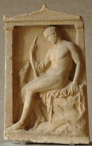 | Keywords: Stele hunter Glyptothek Munich 492.jpg Grabrelief eines Jünglings Der Verstorbene als Jäger mit dem Wurfholz der Hasenjagd und seinem Hund Attika um 360 v Chr Funerary relief of a young man He is depicted as a hunter holding a throwing weapon for hare hunting his dog next to him Attica ca 360 BC Relief funéraire d'un jeune homme Il est représenté comme un chasseur tenant une arme de jet pour la chasse au lièvre son chien à ses pieds Attique v 360 av J -C H 119 cm Museum Glyptothek Munich Room 6 Saal des Grabreliefs mit dem Jäger object history credit line accession number Inv 492 User Bibi Saint-Pol own work 2007-02-08 other versions <gallery> File Stele hunter Glyptothek Munich 492 n2 jpg </gallery> Ancient Greek funerary steles Reliefs of hunting Reliefs of dogs Classical Greek sculptures in the Glyptothek Munich Glyptothek Munich - Room 6 360s BC |