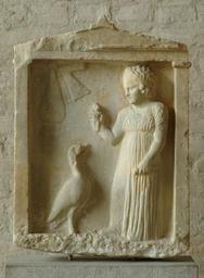 | Keywords: Stele Plangon Glyptothek Munich 199.jpg Grabstein der Plangon Inschrift ΡΛΑΓΩΠDas verstorbene Mädchen hat eine Puppe in der rechten Hand und einen kleinen Vogel in der linken Eine gans steht vor ihr und an der Wand sind ein Beutel und ein nicht zu identifizierender Gegenstand Spielgerät zu erkennen Athen um 310 v Chr Funerary stele of Plangon inscription ΡΛΑΓΩΠThe dead girl holds a puppet in the right hand and a little bird in the left one A goose stand before her and a bag with an uncertain object toy are hanging at the wall Athens ca 310 BC Stèle funéraire de Plangon inscription ΡΛΑΓΩΠLa jeune fille morte tient une poupée dans la dextre et un petit oiseau dans la senestre Devant elle une oie et au mur sont accrochés un sac et un objet non identifié jouet Athènes v 310 av J -C H 73 8 cm W 53 cm Museum Glyptothek Munich Room 4 Saal der Mnesarete object history credit line accession number Inv 199 User Bibi Saint-Pol own work 2007-02-08 other versions Ancient Greek funerary steles Reliefs of girls Reliefs of geese Glyptothek Munich - Room 4 Hellenistic sculptures in the Glyptothek Munich Children in ancient Greek funerary art Children with animals in art |