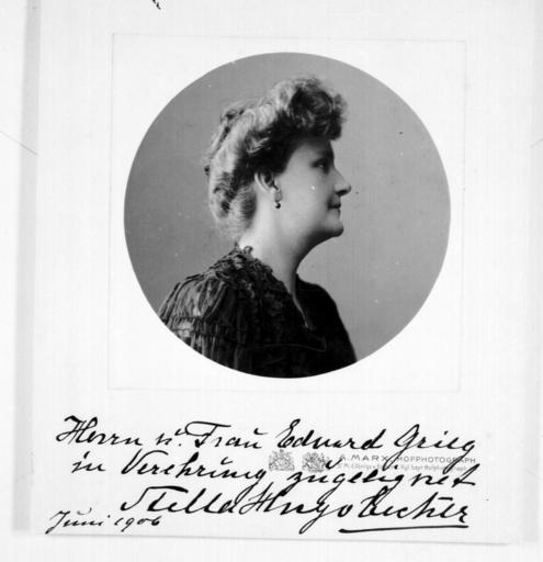 Keywords: edvard grieg edvardgrieg vintage black and white blackandwhite historic norway stella becker stellabecker woman circle portrait autograph profile monochrome blackandwhite black and white Artist: A. Marx, Hofphotograph Date/place: Juni 1906 Subject: Stella Becker Medium: photographic positive, B&W Notes: Written under the photo: "Herrn u. Frau Edvard Grieg in Verehrung zugelignet [?] Stella Hugo Becker juni 1906" Persistent URL: Original belongs to the Edvard Grieg Archives at Bergen Public Library Original reference: EGM0173 Artist: A. Marx, Hofphotograph Date/place: Juni 1906 Subject: Stella Becker Medium: photographic positive, B&W Notes: Written under the photo: "Herrn u. Frau Edvard Grieg in Verehrung zugelignet [?] Stella Hugo Becker juni 1906" Persistent URL: Original belongs to the Edvard Grieg Archives at Bergen Public Library Original reference: EGM0173 |