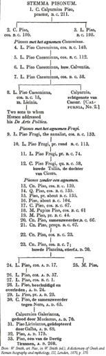 Keywords: Stemma Pisonum.gif Family tree of the Roman family of the Pisones belonging to the Gens Calpurnia Scanned from W Smith art Piso in W Smith ed A dictionary of Greek and Roman biography and mythology III Londen 1870 p 370 Bron W Smith art Piso in W Smith ed A dictionary of Greek and Roman biography and mythology III Londen 1870 p 370 PD-old original upload log page nl wikipedia Stemma_Pisonum gif 2005-08-07 09 23 Evil berry 362×1210×8 33861 bytes <nowiki>Bron W Smith art Piso in W Smith ed A dictionary of Greek and Roman biography and mythology III Londen 1870 p 370 PD Categorie Afbeelding stamboom</nowiki> Gens Calpurnia Family trees Ancient Roman families The Dictionary of Greek and Roman Biography and Mythology |