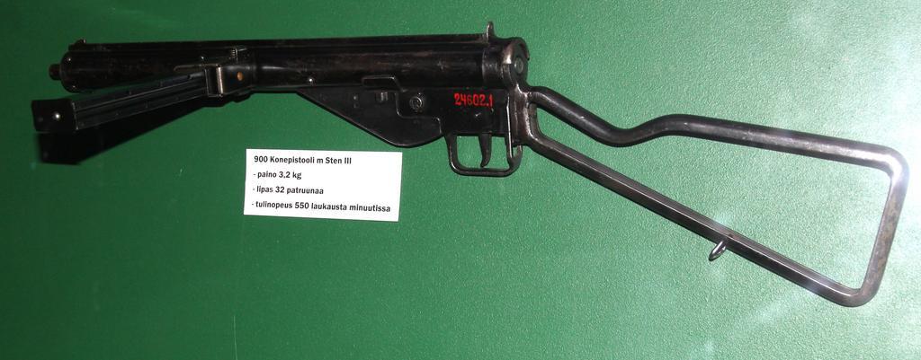 Keywords: Sten Mk III Mikkeli.JPG en Sten Mk III submachine gun one of approximately 76 000 Sten Mk II and III purchased by Finland in 1957-1958 hotographed in Mikkeli Infantry museum fi Sten Mk III konepistooli yksi Suomeen vuosina 1957-1958 hankituista noin 76 000 Sten Mk II ja III konepistoolista Kuvattu Jalkaväkimuseossa own MKFI 2011-07-14 61 40 52 03 N 27 15 44 9 E region FI Sten Submachine guns of Finland Mikkeli Infantry museum Taken with Canon EOS 60D Taken with Canon EF-S 15-85mm F3 5-5 6 IS USM Files by User MKFI |
