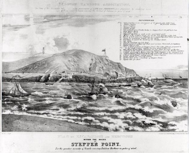 | Keywords: Stepper Point Lithograph.jpg en A lithograph of by the Padstow Harbour Association showing the location of the HMS Whiting wreck 2012-06-07 http //www promare co uk/whiting/WhitingPlanning html Padstow Harbour Association / ProMare / Nautical Archaeology Society Title text Padstow Harbour Association The views of the institution are to ensure the preservation of Property from shipwreck by rendering more offers of assistance to vessels entering the Harbour of Padstow in gales of wind References text Outer Capstan in an excavation of 30 squ ft with steps Middle Capstan 88 fathoms Inner Capstan Stepper Point Clouter Hedge Line of road from Clouter Hedge to Stepper Point 212 fathoms with posts High Water Mark Low Water Mark Channel 60 fathoms wide in narrowest part Ketch of Dunbar Sand dry at the last quarter of the tide Wreck of H M Schooner Whiting stern appearing at Low Water Spring Tides Bouys for steadying vessels off shore Red Bouy marking Ketch of Dunbar sand Life Boat Slip for hauling up lifeboat Houses erected to contain life boat and various materials for Capstans Signal Post for sea Line of that portion of Stepper Point 800cu fathoms proposed to be cut away to give vessels true wind further in DayMark 50 ft high standing 254 feet about the level of the sea A vessel in the eddy wind receiving assistance from the Middle Capstan A boat conveying a hawser from the outer capstan to the assistance of a vessel in danger of being drive onto the Dunbar sand and being wrecked A vessel out of danger sailing past the inner capstan Rings placed for mooring vessels Barrel post on the extremity of Stepper Point Signal post for shore Bottom text Plan of excavations and erections within the rocks at Stepper point for greater security of vessels entering Padstow in gales of wind PD-old-70-1923 Uploaded with UploadWizard Doom Bar Stepper Point |