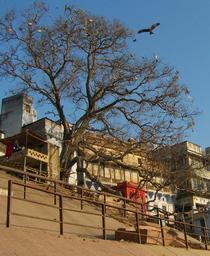 Keywords: steps river side ganges ganga bank barricades bathing ghats buildings varanasi india