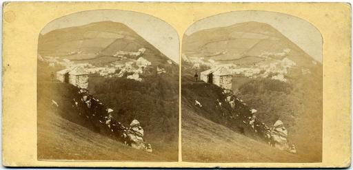 | Keywords: Stereo card Lynton Devon 001.jpg 1860s stereoview picture which has the original label on the back Lynton from the summerhouse Lyn Cliff Photographed and published by W Palmer This is Lynton in Devon England; a village in a gorge The photographer ran the family firm William Eastman Palmer Sons in the Plymouth area in the 1860s and 1870s Scan of stereoview photo in my possession s 1860 William Eastman Palmer d 1896 out of copyright The reverse of the card is here File Stereo card label Lynton Devon 001 jpg PD-old-70-1923 Lynton William Eastman Palmer Stereo cards of the United Kingdom North coast of Devon Cliffs of Devon |