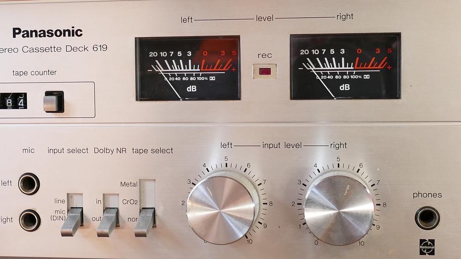 Keywords: stereo dials equipment music technology sound panel audio radio entertainment vintage old volume analog button tuner power control silver electrical metal steel switch band knob rotation recorder machine retro tape counter track recording
