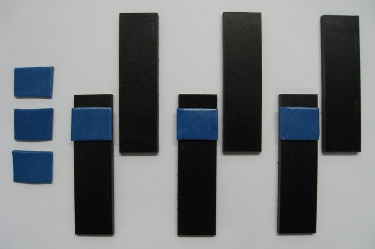 | Keywords: Stérigme.jpg en Sterigma made of composite polyamide 6-6 with 30 glassfiber dimensions 90x25 mm black and epoxy adhesive thickness 2 mm blue to prepare 3 tensile test specimens stérigme/adhésif/stérigme normalisées industrie automobile pour un essai destructif de résistance en traction-cisaillement RTC destiné à évaluer la performance d'un assemblage collé à partir de 6 stérigmes en matériau composite polyamide 6-6 à 30 de fibre de verre dimensions 90x25 mm noir ; et de 3 échantillons d'adhésif mastic polyépoxyde épaisseur 2 mm bleu Ces éprouvettes subiront une cuisson à environ 180 °C pendant 30 min Après un conditionnement à 23 °C pendant 24 h un essai de traction-cisaillement sera réalisé pour mesurer à 23 °C la RTC des éprouvettes collées Ce type d'essai est très souvent utilisé On utilise une machine de traction universelle ; vitesse de traction 10 mm/min Pour cet exemple on trouve une résistance d'environ 2 MPa valeur moyenne sur 3 essais minimum Note une épaisseur de joint de colle plus faible par exemple 0 2 mm cas des collages structuraux donnera toutes choses égales par ailleurs une résistance plus élevée <br /> La valeur de la RTC est égale à la charge à la rupture divisée par la surface du joint de colle <br /> Un test de vieillissement accéléré à l'humidité la chaleur ; essai de corrosion etc peut être réalisé sur les éprouvettes après cuisson et conditionnement own Cjp24 2009-05 thumb left thumb left ImageNote 1 77 369 220 166 2048 1360 2 Epoxy adhesive sealant colored in blue uncured Adhésif mastic époxyde coloré en bleu cru non cuit ImageNoteEnd 1 ImageNote 2 650 592 218 169 2048 1360 2 Futur emplacement de l'adhésif bleu situé sur le stérigme de gauche après appairage ImageNoteEnd 2 ImageNote 3 1508 69 466 1224 2048 1360 2 2 stérigmes noir et une pièce d'adhésif bleu pour préparer une éprouvette collée après appairage alignement et fixation à l'aide de 2 cales d'épaisseur Puis cuisson ImageNoteEnd 3 Adhesives Traction samples Glass-reinforced plastic Epoxides Polyamides |