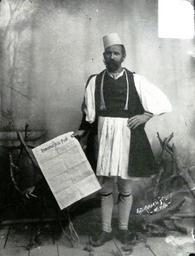 | Keywords: Sterjo Postalina, ilindenski vojvoda.jpg mk Илинденскиот војвода Сте јо Посталина со весник во аката Во 1905 година неговата чета беше опколена и уништена од ту скиот аске но Сте јо се извлече и се п иклучи кон четата на војводата Кошка Јанина 1909 en Ilinden voivode Sterjo Postalina with a newspaper in his hand In 1905 his regiment was surrounded and destroyed by the Turkish army but Sterjo survived and joined the regiment of voivode Koshka Ioannina 1909 DARM archive 1909 The State Archives of the Republic of Macedonia DARM Bitola Department Creator Yanaki and Milton Manaki other versions Custom license marker 2016 09 20 PD-Macedonia Wikipedian in Residence at DARM Photographs by Manaki Brothers Steryo Apostolina |