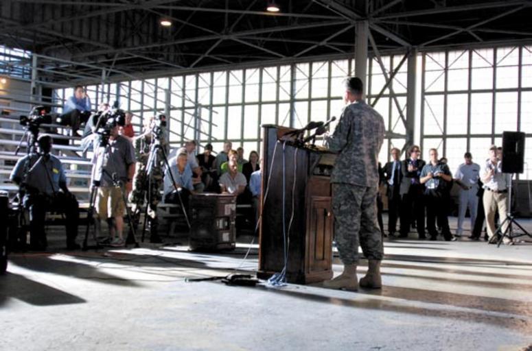 Keywords: Steven David addresses the Press, following a hearing, Guantanamo, June 5th, 2008.jpg Steven David chief defense counsel for the Office of Military Commissions addresses civilian media during a press conference following the arraignment of Khalid Sheikh Mohammed and four other alleged 9/11 co-conspirators in McCalla Hangar here June 5 If found guilty the accused may face capital punishment “ JTF Guantanamo photo by Navy Petty Officer 2nd Class Nat Moger http //www jtfgtmo southcom mil/wire/WirePDF/v9/Issue15v9 pdf JTF Guantanamo photo by Navy Petty Officer 2nd Class Nat Moger 2008-06-05 PD-USGov-Military-Navy Camp McCalla Camp Justice Guantanamo Bay Naval Base |